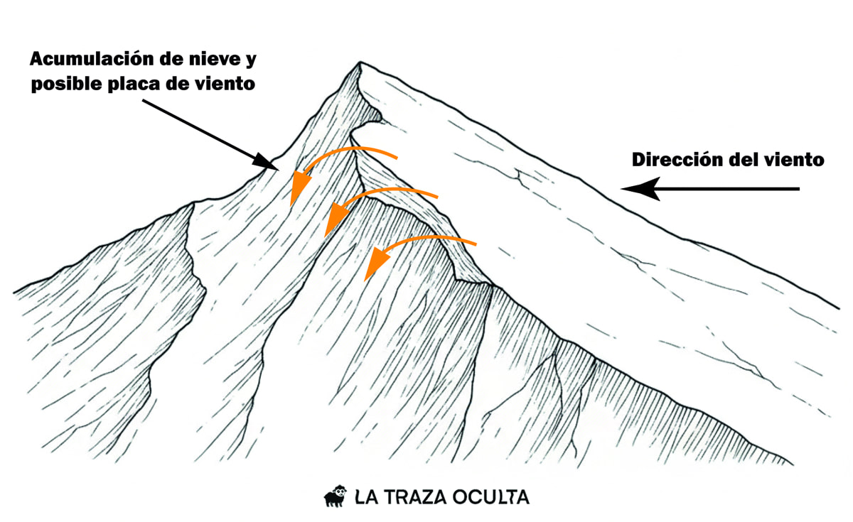 El viento redistribuye la nieve de forma selectiva, arrastra la nieve que hay a barlovento, tras un objeto, como puede ser una cresta o un collado y la acumula a sotavento, incluso dejando aquella zona sin nieve. El viento puede llegar a acumular espesores muy superiores a los que han caído, provocando grandes diferencias en cuanto a espesor. Durante el transporte de la nieve por el viento, los cristales sufren un redondeo, perdiendo su estructura original y compactándose progresivamente. Al depositarse en sotavento —detrás de crestas, cambios de pendiente, canales o irregularidades del terreno— la nieve forma una capa densa, cohesionada y relativamente rígida. Esta capa forma lo que se denomina una placa de viento.